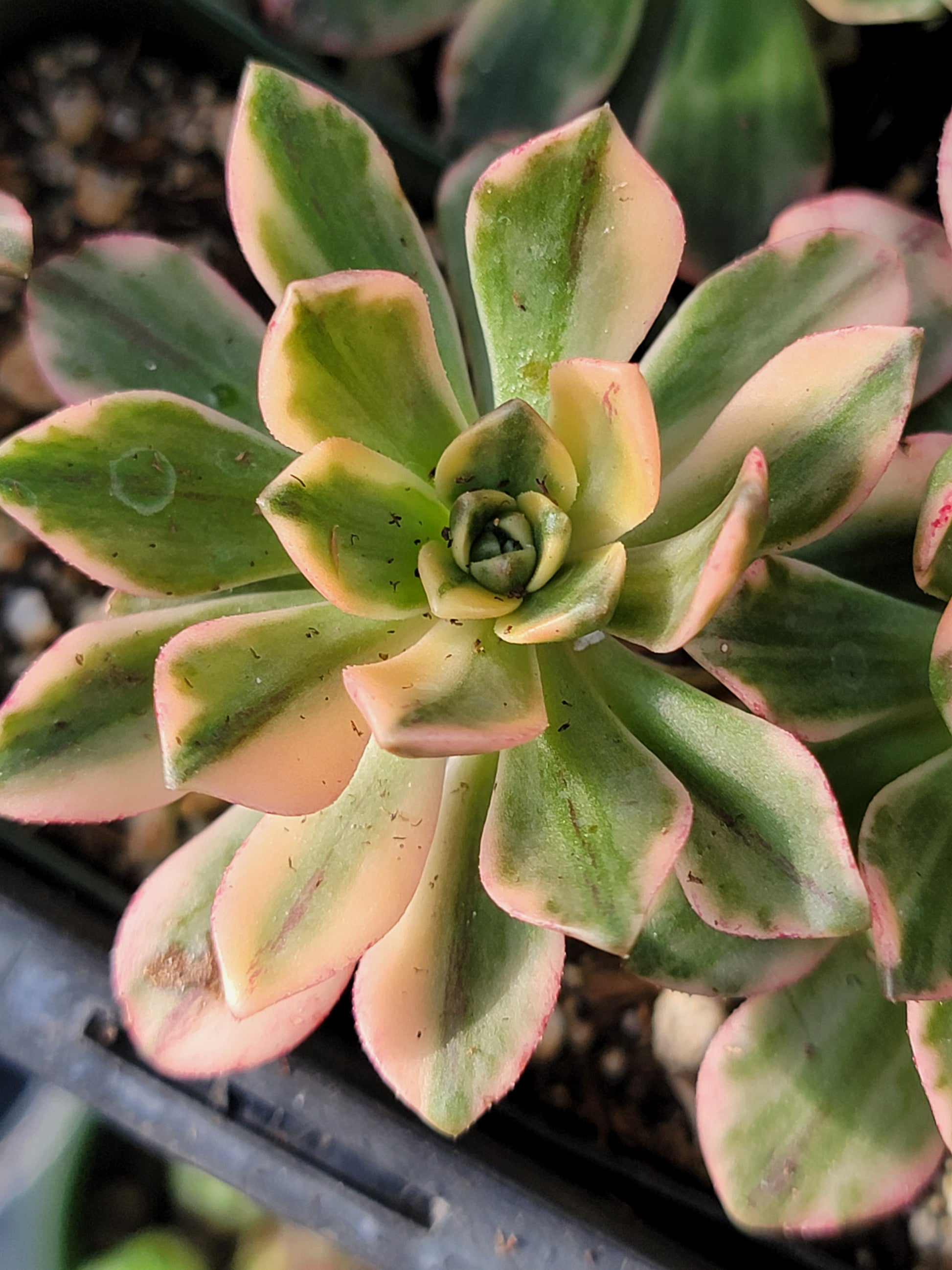 For Imported plant: It may be a bit SHRIVELED and minimal to no root. Once it starts to root, color may change a bit green